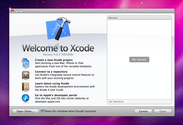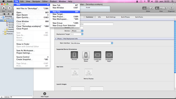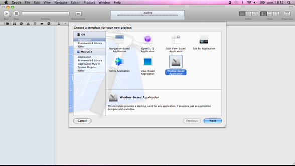Build and run the application to verify that everything works fine. At this point, you should see only a blank white window. Next, we are going to add the web view responsible for loading the content served by Exponential. Because we will need to access that web subview during runtime, “MainController” needs an outlet for that subview. Add the following instance variable to “MainController.h”: