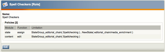 This role is assigned to the «Bulk Editors» group, and allows Brad, once he finished writing the initial text of a piece of news, to push it one step ahead to the Spell Checking phase (Stefan).