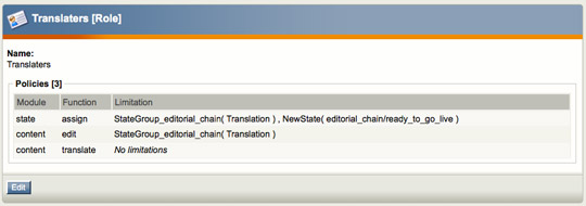 This role is assigned to the «Translaters» group, and allows Telma, once she finished translating the piece of news into various languages, to push it live ! The content object will then be in the last step of our editorial chain: “Ready to go live”.