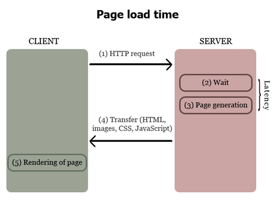 This is the total time from when the request is sent from the client until the page is completely displayed in the client's browser. This includes the transfer of HTML, CSS, images and any other elements needed from the server to display the complete page. Typically, this also includes the actual rendering time by the visitor's browser.