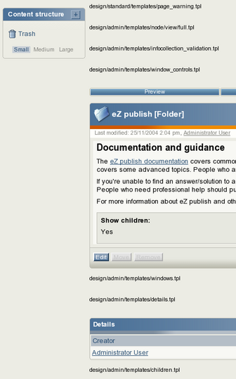The Administration Interface with ShowXHTMLCode and Debug enabled